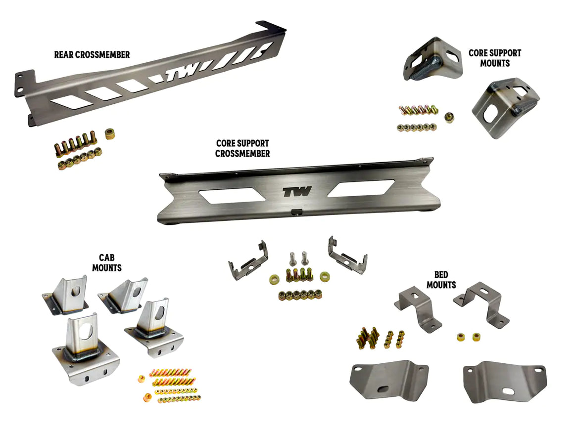Upgrade your C10 frame with a complete perimeter bracket kit designed for strength, precision, and simplicity. This all in one package includes every perimeter mount and crossmember needed for a direct factory replacement. No hunting down individual pieces, no guesswork, and no compromises.